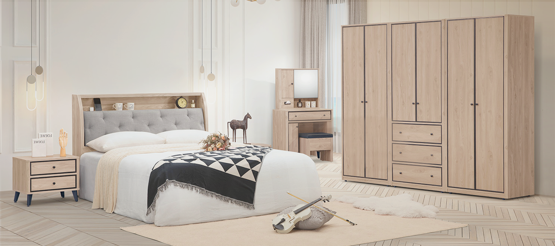 歐韻提供之居家家具可應用在出租套房、宿舍、自家用,包含床組、衣櫃、桌椅、小型櫃子等。